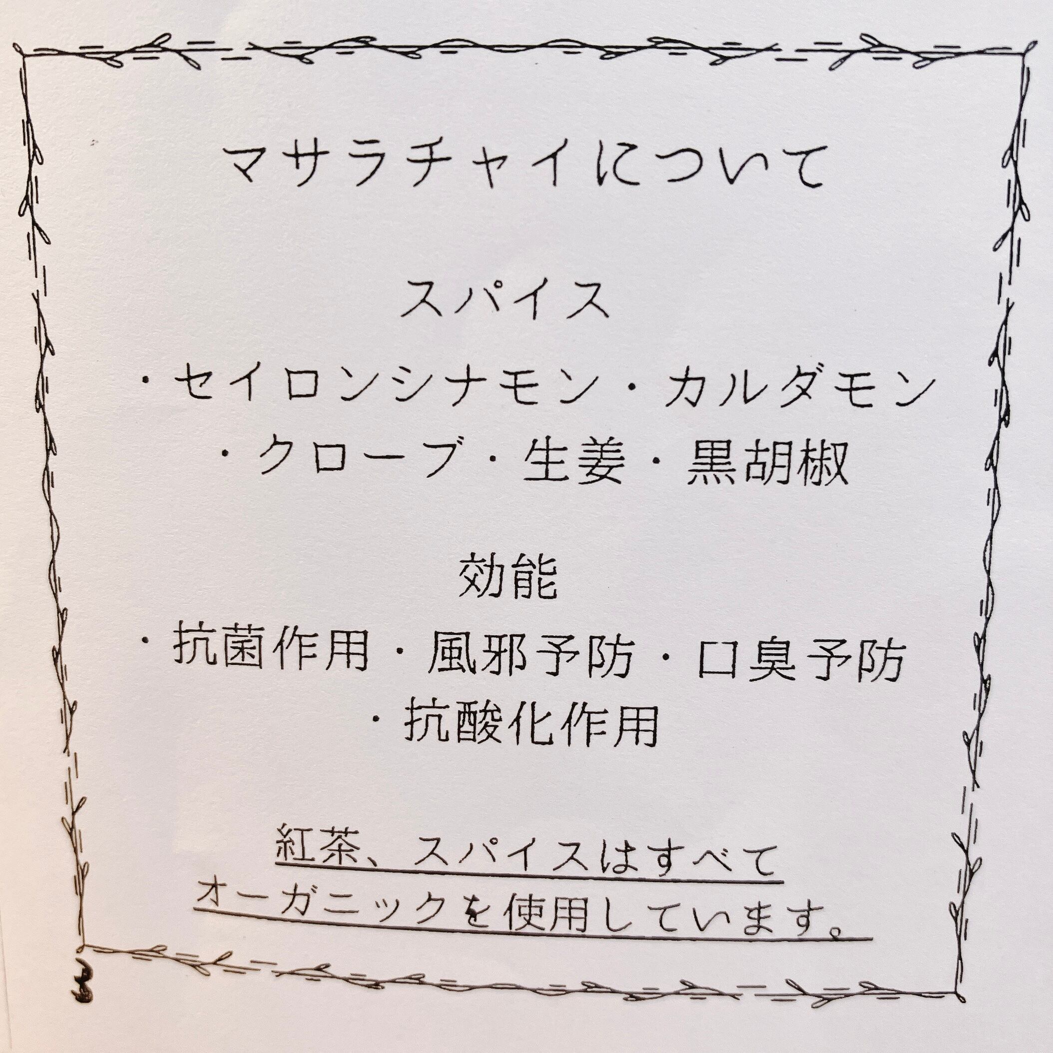 有機紅茶と有機スパイスのミックス。